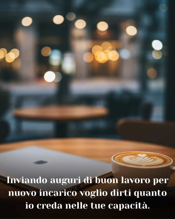 - Inviando auguri di buon lavoro per nuovo incarico voglio dirti quanto io creda nelle tue capacità.